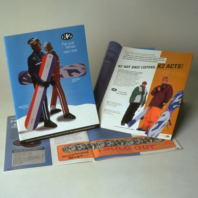 In the early days of snowboarding, K2 Snowboards was battling the issue of people associating their snowboards with ski culture because they were known primarily for their skis. And the last thing snowboarders wanted was to be associated with a ski brand. On an effort to separate K2 Snowboards from K2 Skis, I created an ad that was the antithesis to K2 Ski advertising: siimply what looked like scribbling on a tabloid page by a stoned snowboarder. I also designed and wrote the tabloid page and filled it with insider jokes for snowboarders. The ad helped K2 Snowboards really separate culturally from the ski crowd and change direction not only for their advertising, but also snowboard and catalog design.
